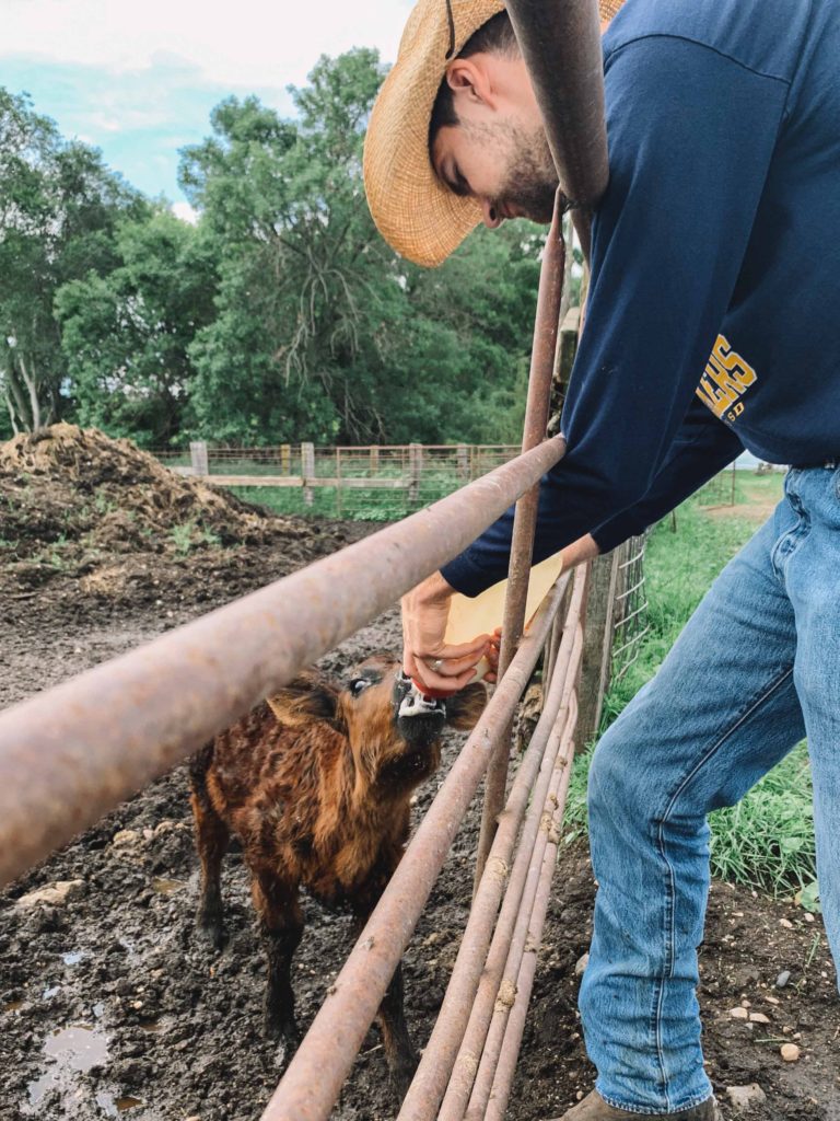 Our first job was to learn the daily tasks- or “baby chores” as Dean likes to call them. Every morning that we work, we start by bottle-feeding a calf (yes, it’s that cute), feeding horses, bulls, heifers, more bulls, more horses, and barn cats.